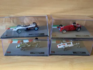 Conjunto de cuatro modelos de coches de Fórmula 1 clásicos a escala 1/43. En perfecto estado, muy detallados. Precio lote: 50€ Cada modelo por separado:15€ - Ferrari 312 F1-1964 (Lorenzo Bandini) - Alfa Romeo 158 - 1950 (Nino Farina) - Brabham BT24 - 1967 (Denny Hulme) - Honda RA300 - 1967 (John Surtees)