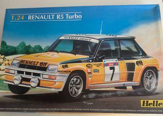 Maqueta a escala 1/24 del Renault 5 Turbo de rally. - Modelo de la marca Heller. - Representación del coche de competición. - Diseño icónico del R5 Turbo.