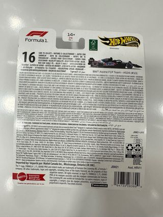 Pack Tres coches de Hot Wheels Premium de la Fórmula 1 de la temporada 2024. Están nuevos y en sus cajas originales. - Incluyen los modelos MoneyGram Haas F1 Team - VF-24, BWT Alpine F1 Team - A524 y Oracle Red Bull Racing - RB20. - Son réplicas a escala de los coches de Fórmula 1. - Perfectos para coleccionistas o entusiastas del automovilismo.
