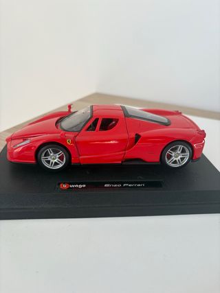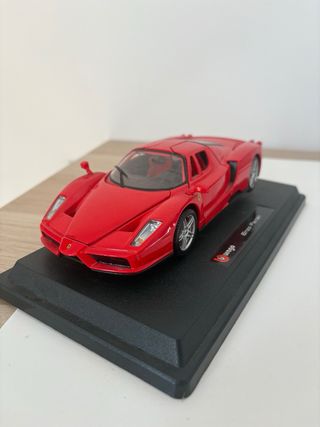 Réplica del Ferrari Enzo a escala 1/24 de la marca Burago. Un modelo detallado para coleccionistas. - Color rojo vibrante. - Base expositora negra con nombre del modelo. - Siempre guardado en vitrina