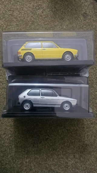 Dos coches a escala del modelo Volkswagen. - Escala 1:24. - Color amarillo.