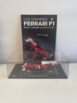 Réplica del Ferrari 312 B2 de 1972, pilotado por Jacky Ickx, a escala 1/24. - Modelo de la colección Los Grandes Ferrari F1. - Incluye la revista Mito y Pasión a Escala 1/24. - Coche en vitrina protectora.