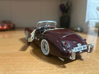 Réplica detallada del Jaguar XK120 roadster a escala 1/24. Un clásico deportivo. Burago - Color burdeos. - Diseño descapotable. Maisto welly whitebox minigt coches inolvidables ferrari aston martin alonso f1