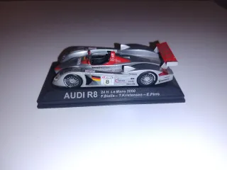 Réplica detallada del Audi R8 que compitió en las 24 Horas de Le Mans en el año 2000. Este modelo a escala 1:43 captura la esencia de un coche de carreras icónico. - Modelo: Audi R8 - Edición: 24 Horas de Le Mans 2000 - Escala: 1:43 - Pilotos: F. Biela - T. Kristensen - E. Pirro