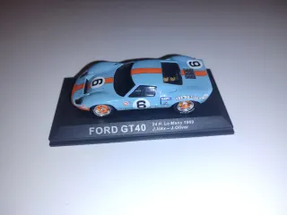 Réplica a escala 1:43 del Ford GT40 que compitió en las 24 Horas de Le Mans en 1969. - Modelo: Ford GT40 - Edición: 24 H. Le Mans 1969 - Pilotos: J. Ickx - J. Oliver - Escala: 1:43