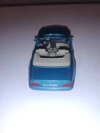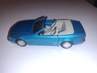 Réplica detallada del Mercedes 500 SL a escala 1:24. Un modelo clásico para coleccionistas. - Color azul metálico. - Diseño descapotable. - Interior detallado.