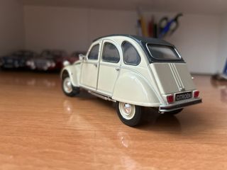 Réplica detallada del icónico Citroën 2CV a escala 1:24. - Fabricado por Welly. - Color beige con techo negro. Seat fiat peugeot ford salvat coches inolvidables burago maisto motormax whitebox