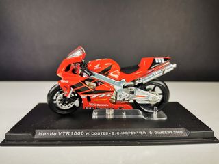 Moto a escala 1/24 Honda VTR1000 de costes y charpenter temporada 2000 en perfectas condiciones con todo lujo de detalle con su base y su vitrina incluidas. Modelo difícil de encontrar y más en estas condiciones. Construido bajo licencia de la marca. Se hacen packs a convenir con buenas ofertas. @houseofcollection95 Se hacen envíos a toda España, Italia y Portugal. Tengo más anuncios del estilo en mi perfil. Cualquier cuestión no dudéis en preguntar. #motogp #lorenzo #motos #escala #rossi #marquez #nieto #Alonso #schumacher #F1 #burago #maisto #cmr#minichamps #norev #spark #casco