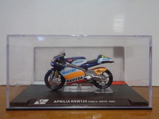 Miniatura a escala 1/24 de la moto APRILIA RSW125. En buen estado, en su estuche original. A TU DISPOSICION EN MI WHASTAPP 628 714014. (C53 86)