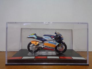 Miniatura a escala 1-24, de la moto HONDA RS250RW – ALEX DEBON 2005 . En buen estado en su caja original. (55 95)