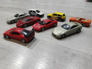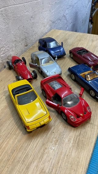 Colección de 8 coches a escala de la marca Ferrari. Modelos variados para coleccionistas. - Incluye modelos deportivos y de competición. - Diseños detallados y colores icónicos de Ferrari.hay 7 a escala 1/36 Uno 4€ los 7 coches 25 El grande rojo 12€