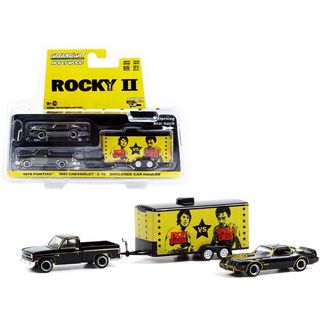ARTÍCULO NUEVO - PRECIO CERRADO Coches en miniatura Chevrolet C-10 + Pontiac Firebird Trans Am de la película "Rocky II" (1979) Greenlight 1/64 Escala: 1/64 (Un coche de 1/64 mide de largo entre 5 y 7 cm. aprox.) Fabricante: Greenlight Estado: Modelo nuevo en blister precintado Presentación: Blister sellado con imagen temática Material: Carrocería de aleación metálica e interiores plásticos Edad recomendada: Mayores de 8 años Referencia: 31120A