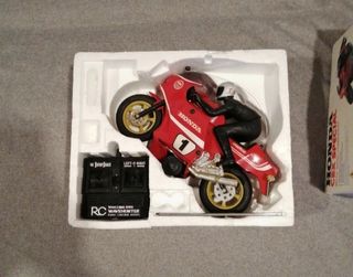 Preciosa moto radiocontrol vintage honda cbx especial del año 1981,marca yonezawa,fabricado en singapur,incluye mando,antena y caja original,con instrucciones en el dorso de.la caja, funciona con pilas,escala 1/8,motorista extraíble,funcionando bastante bien para sus años,aunque no le vendría mal un repaso,los faros delanteros se encienden si se desea,o se pueden apagar para optimizar la duración de la bateria ,inclinación de 35° para el giro,sonido real del motor,ruedas de goma,en buen estado para sus años,falta el alerón,articulo muy escaso en el mercado y difícil de conseguir,ideal para coleccionistas a amantes de retro