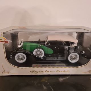 Maqueta de metal de la marca Signature Models, modelo Duesenberg 1934. Escala 1/18. Puertas y capó practicables, nada de resinas. Nuevo sin sacar de la caja. Por supuesto completo. Caja algo rozada. Entrego en mano o envío. Acepto pago mediante transferencia, PayPal como familiar, Bizum, o en mano en Zaragoza. Sólo se envía mediante Wallapop a usuarios con un determinado número de votos y valoraciones positivas. Gastos de envío certificado 8 euros.
