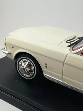 Ford Mustang Convertible de 1965. Modelo coleccionable de metal a escala 1:24. El coche es blanco mate con interior rojo. Nunca se ha abierto. Se entrega en su blíster original. Ideal para coleccionar o decorar. Mide 20 cm de largo. Se realizan envíos