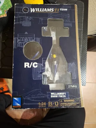 Coche de radiocontrol a escala 1:24 del equipo Williams F1 BMW FW26. - Modelo de la marca NewRay. - Frecuencia de 27MHz. - Funciona con baterías.