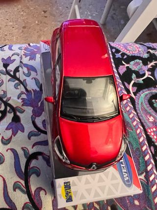 Réplica de coche renault clio en metal de color rojo. - Modelo a escala. - Puertas abatibles.