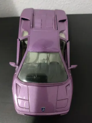Lamborghini Diablo. Coche a escala de un modelo mítico e irrepetible de los años 90. Apertura de puertas y maletero mostrando motor trasero. Volante que gira las ruedas. Marca GuiToy Made in Spain. Tiene una rayada en el cristal/plástico del parabrisas frontal y alguna marca en la carrocería.