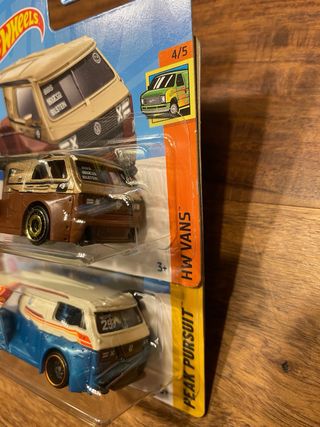 Pack de dos vehículos Hotwheels modelo VW T3 Custom. 🛑 Solo hago envios por importes iguales o superiores a 8€. ⭕️ Para importes menores de 8€ recogida en mano. 👍 Es un buen articulo para tu vitrina. 🚚 Agrupo pedidos. ⚠️ Revisa mi perfil. Majorette Hot Wheels Matchbox - Un modelo en color marrón y dorado con detalles de competición. - Otro modelo en color blanco y azul con diseño retro. - Escala 1:64.