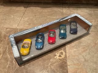 Conjunto de cinco coches cabriolet de metal a escala 1/43 de la marca Cararama. Cabrios Descapotados. Honda S2000, Porsche Boxster, BMW Z3, Mercedes Clk y BMW serie 3. Nuevos a estrenar en su caja original sin abrir. - Incluye 5 modelos diferentes. - Escala 1:43. - Fabricados en metal.