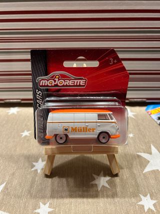Furgoneta VW T1 de juguete Majorette con diseño de Müller. - Se abre el portón trasero - Color blanco con detalles naranjas. - Escala 1:64. - Edad: 3+ años. 🛑 Solo hago envios por importes iguales o superiores a 8€. ⭕️ Para importes menores de 8€ recogida en mano. 👍 Es un buen articulo para tu vitrina. 🚚 Agrupo pedidos. ⚠️ Revisa mi perfil. Majorette Hot Wheels Matchbox