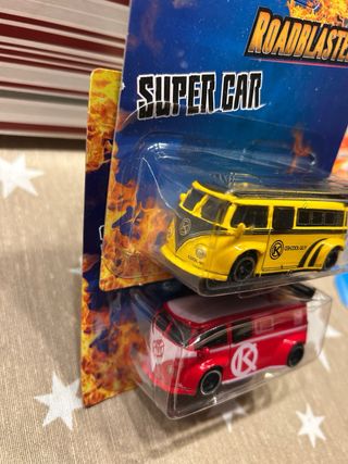 Pack de dos coches a escala VW T1 Sport. - Ultimas unidades con blister algo mal como se observa en las fotos. - Un coche es de color amarillo. - El otro coche es de color rojo. 🛑 Solo hago envios por importes iguales o superiores a 8€. ⭕️ Para importes menores de 8€ recogida en mano. 👍 Es un buen articulo para tu vitrina. 🚚 Agrupo pedidos. ⚠️ Revisa mi perfil. Majorette Hot Wheels Matchbox