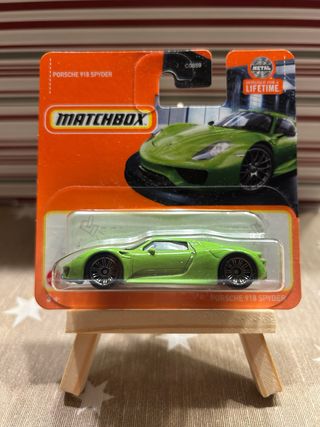 Coche a escala Matchbox del Porsche 918 Spyder. 🛑 Solo hago envios por importes iguales o superiores a 8€. ⭕️ Para importes menores de 8€ recogida en mano. 👍 Es un buen articulo para tu vitrina. 🚚 Agrupo pedidos. ⚠️ Revisa mi perfil. Majorette Hot Wheels Matchbox - Color verde metálico. - Diseño deportivo. - Presentado en su embalaje original.