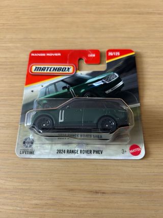 Coche de juguete Matchbox del Range Rover PHEV de 2024. 🛑 Solo hago envios por importes iguales o superiores a 8€. ⭕️ Para importes menores de 8€ recogida en mano. 👍 Es un buen articulo para tu vitrina. 🚚 Agrupo pedidos. ⚠️ Revisa mi perfil. Majorette Hot Wheels Matchbox - Color verde Inglés. - Diseño detallado. - Escala 26/125.