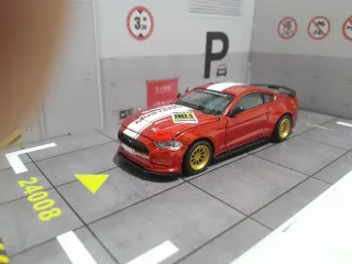 Réplica detallada del Ford Mustang GT a escala 1/36. - Diseño deportivo en color rojo. - Llantas doradas. - Detalles de competición.
