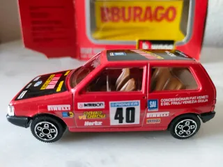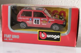 Reproducción del Fiat Uno Rally a escala 1/43. Medidas: 9 x 4 centímetros. Impecable, no se ha usado nunca. Mantiene su caja original. Marca: Burago Regalo para adultos, coleccionistas o niños.