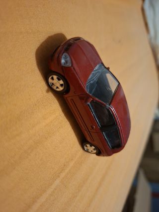 Coche de juguete a escala del Toyota Corolla. Un modelo clásico para coleccionistas o para jugar. - Color rojo metálico. - Detalles en gris en las ventanas y llantas. - Fabricado por Motor Max.