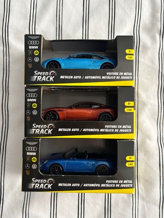 Set de 3 coches metálicos a escala 1:43, nuevos en su caja original. Incluye modelos de marcas como, BMW, Aston Martin y Porsche Escala 1:43.