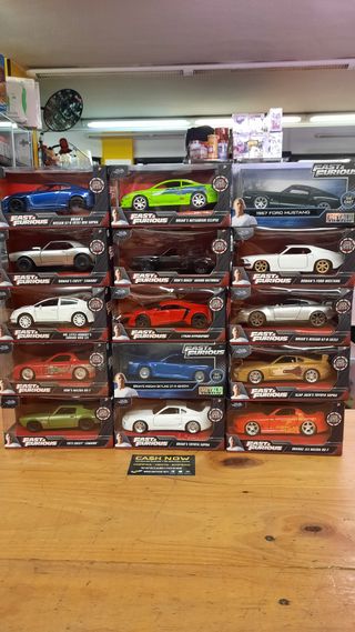 JADA FAST & FURIOUS COCHES A ESCALA 1/32 EN CAJAS INDIVIDUALES PRECINTADAS. A ESTRENAR. PRECIO POR UNIDAD: 15€. Se puede ver y probar en nuestra tienda CASH NOW GIJÓN de Asturias - Gijón, C/ Ramón y Cajal nº 6 Bajo, en horario de 10 a 14 y de 16 a 20 de Lunes a Viernes. Posible envío peninsular certificado (no contra reembolso) con entrega domiciliaria y pago por ingreso, transferencia o Bizum. Para iniciar la tramitación de la compra se debe siempre contactar previamente de forma directa con la tienda CASH NOW indicada en el anuncio, a través de e-mail, teléfono o WhatsApp para confirmar disponibilidad de stock y condiciones.