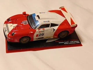 Réplica del Porsche 911 SC Almeras de rally. Modelo a escala con decoración detallada. - Coche de slot. - Decoración Almeras con dorsal 29. - Patrocinadores: Mobil, Falke, Michelin. -Falta el retrovisor izquierdo -Funciona genial -Tiene vitrina