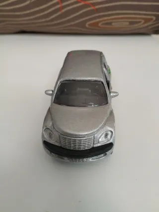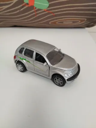 Réplica detallada de un Chrysler PT Cruiser en color plateado. Este coche a escala captura el diseño distintivo del modelo. - Color plateado metálico. - Detalles en verde en los laterales.coche GT CRUISER ESCALA 1/39. DAIMLER CHRYSLER 2000
