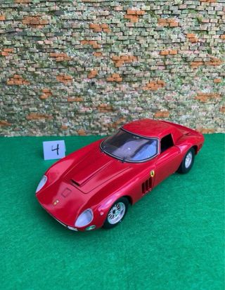 🚙 Ferrari 250 GTO (1964) – Guiloy – Escala 1:18 Ferrari 250 GTO de 1964 fabricado por Guiloy, en escala 1:18, con un diseño clásico y uno de los modelos más icónicos de la marca. ✔️ Carrocería en color burdeos oscuro muy llamativo (ver imágenes) ✔️ Interior detallado con estilo vintage ✔️ Llantas de radios cromados con acabado clásico ✔️ Fabricación made in Spain por Guiloy (ver imágenes) ✔️ Estado nuevo; únicamente ha estado expuesto en vitrina (ver imágenes). Perfecto para coleccionistas o para decorar vitrinas y dioramas. 📦 Entrego bien protegido. 🔁 Mira mi perfil para más coches a escala 1:18. ❓¿Dudas? Escríbeme sin compromiso.
