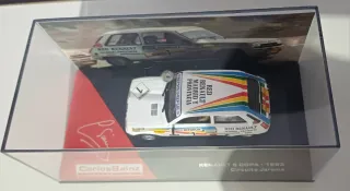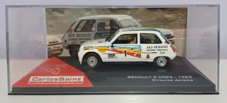 Réplica del Renault 5 Copa de Carlos Sainz de 1983 en el circuito del Jarama. - Modelo a escala 1/43. - Presentado en su vitrina expositora. - Base conmemorativa 'Carlos Sainz Collection' y detalles de la carrera. - Sin sacar de su caja original.