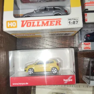 Lote de coches de colección a escala 1:87 de diferentes marcas reconocidas. - Coche deportivo VW 1:87. - Coche deportivo negro Herpa 1:87. - Coche deportivo amarillo. - Furgoneta roja Fire Dept 1:87. - Furgoneta negra Busch 1:87. - Coche familiar blanco y rojo Notarzt 1:87. - Máquina barredora Wiking Hako Citymaster 1:87. - Precio unidad 12€