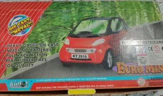 Coche de juguete a escala Euro Mini de Kintoy. - Fabricado en metal fundido de alta resistencia. - Mecanismo de retroceso (pull back action). - Neumáticos de goma. - No requiere pilas.