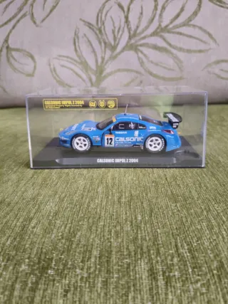Réplica detallada del coche de carreras Calsonic Impul Z 2004. - Modelo a escala. - Diseño deportivo azul. - Incluye base expositora.