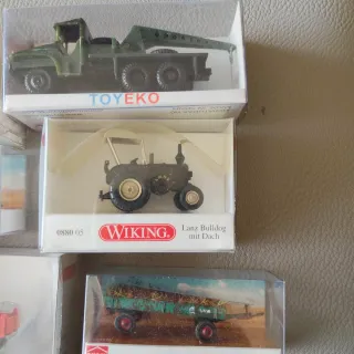 Colección de maquetas de vehículos agrícolas y de construcción a escala 1:87. - Maqueta Wiking Hanomag K55 (0844 37). - Maqueta Wiking Kehrmaschine Hako Citymaster (0657 04). - Maqueta Wiking Fendt. - Maqueta Toyeko. - Maqueta Wiking Lanz Bulldog mit Dach (0880 05). - Maqueta Busch. - Maqueta Claas. Precio unidad 22€