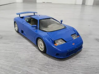 Réplica a escala 1/18 del Bugatti de Burago en color azul. - Modelo deportivo. - Detalles realistas.