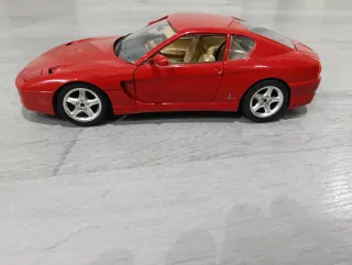 Réplica detallada del Ferrari 456 GT a escala 1:18 de la marca Burago. Un modelo icónico para coleccionistas. - Color rojo vibrante. - Interior detallado en color beige.