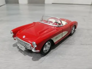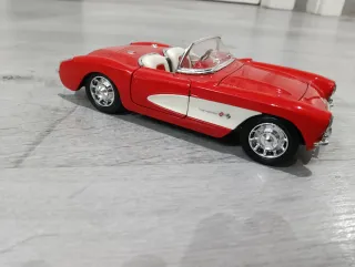 Réplica detallada del Chevrolet Corvette de 1957 a escala 1:24. Un clásico americano con un diseño icónico. - Color rojo vibrante. - Interior en blanco y negro. - Detalles cromados en parrilla y parachoques.