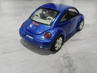 Réplica detallada del Volkswagen New Beetle a escala 1:18. Un modelo clásico con un acabado brillante. - Color azul metalizado. - Interior detallado.
