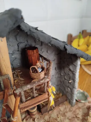 Pesebre artesanal para tu Belén. Estilo pasiego o de aldea . Con todos lo o detalles que se ven en las fotos excepto la figura. Hecho a mano. Para figuras de unos 12cm. Mide40 de ancho x 17 de fondo x 25 de alto .