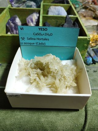 Yeso cristalizado procedente de Salina Hortales en la población El Bosque en Cádiz. Va en la caja de la imagen de 6 x 6