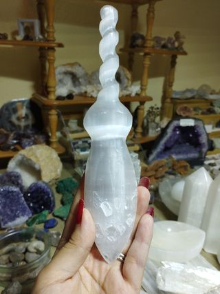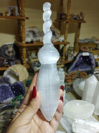 Selenita en forma de daga, idel para limpiar y recargar todos tus minerales.