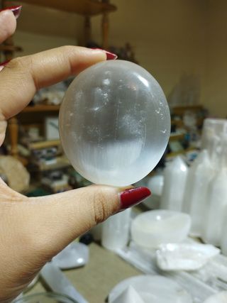Selenita en forma se jabón. Mide 6cm x 5 cm