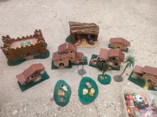 Conjunto de figuras y casitas para un belén. - Incluye un castillo. - Varias casas de estilo rústico. - Figuras de belén. - Elementos decorativos como árboles y rocas.